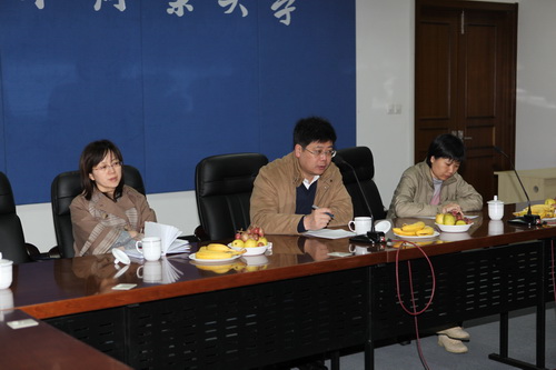 张坤生处长首先介绍了我校 2008 年科研工作取得的主要成绩并结合我校 2009 年党政工作要点,对 2009 年科研工作的主要设想进行了汇报。现代技术中心主任王文利和设备处处长侯其考汇报了我校数字化校园建设和信息化应用的总体情况。经济学院党总支书记白玲就我校申报天津市《产业发展与创新》人文社科基地的筹备情况进行了详细的汇报。