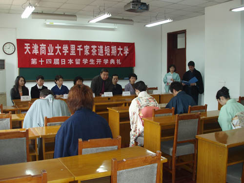 我校里千家茶道短期大学在青云馆举行了第十四届日本留学生开学典礼